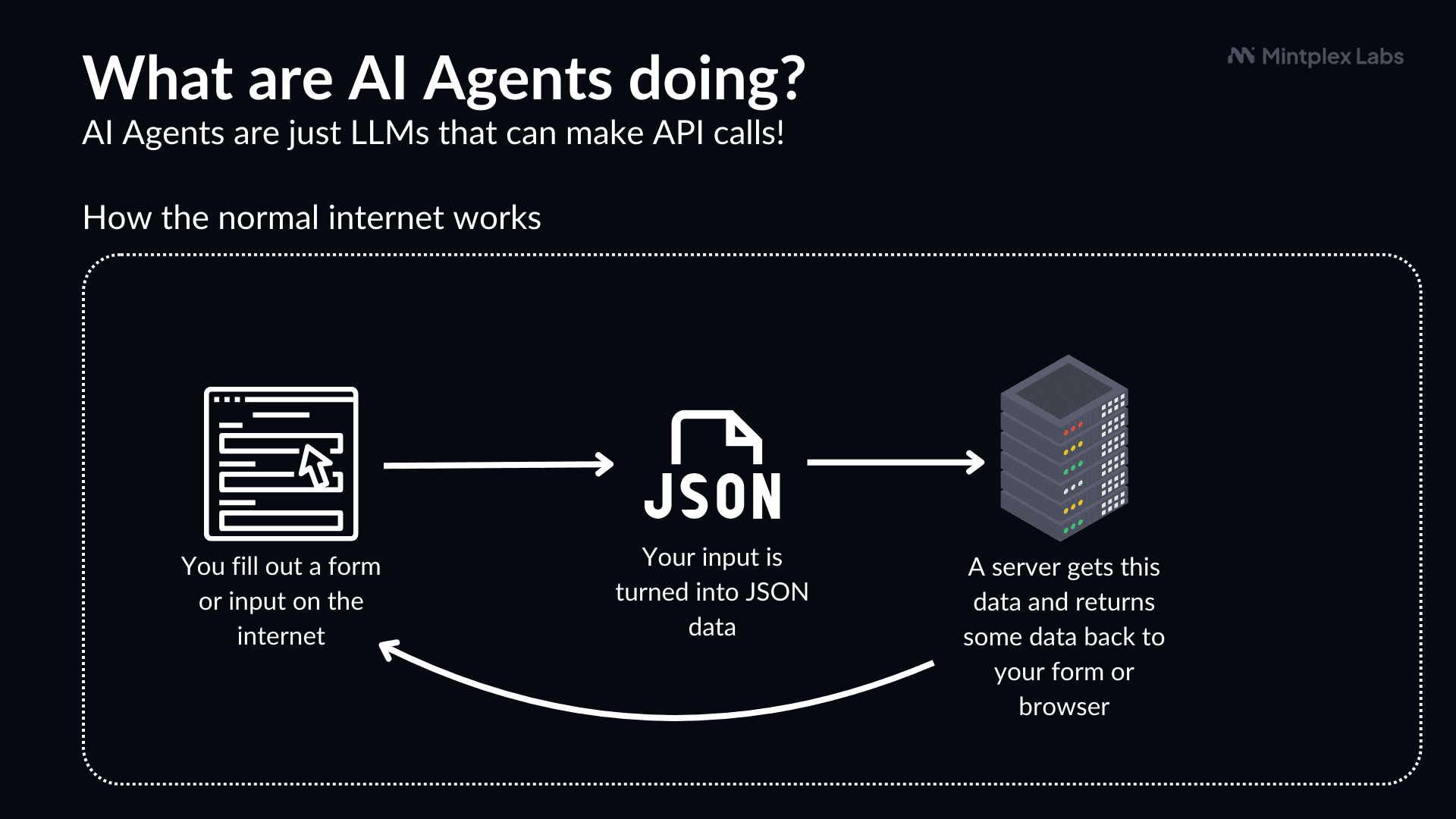 Without getting too technical there is some foundational knowledge to understand what an "AI Agent" even is. The below graphics really describe what LLMs are doing and "reasoning" about. As you can see, its no different that a specifically formatted text response!