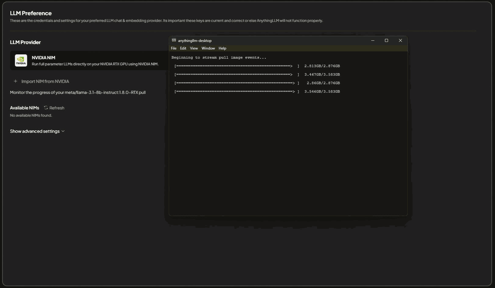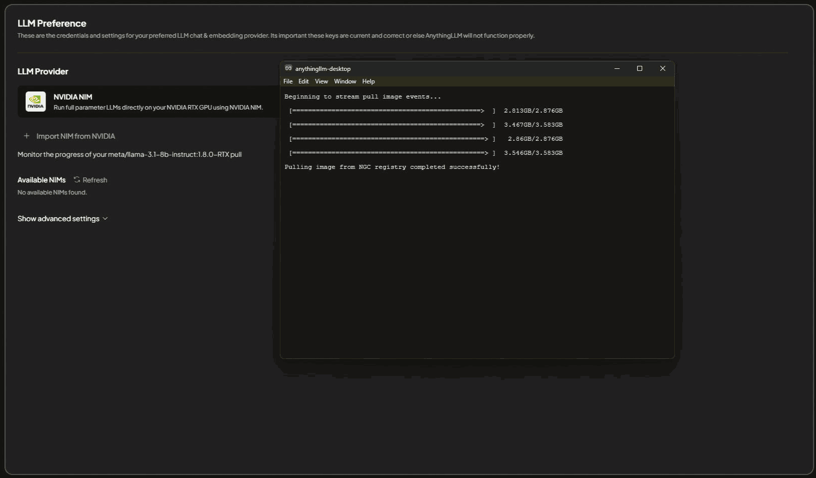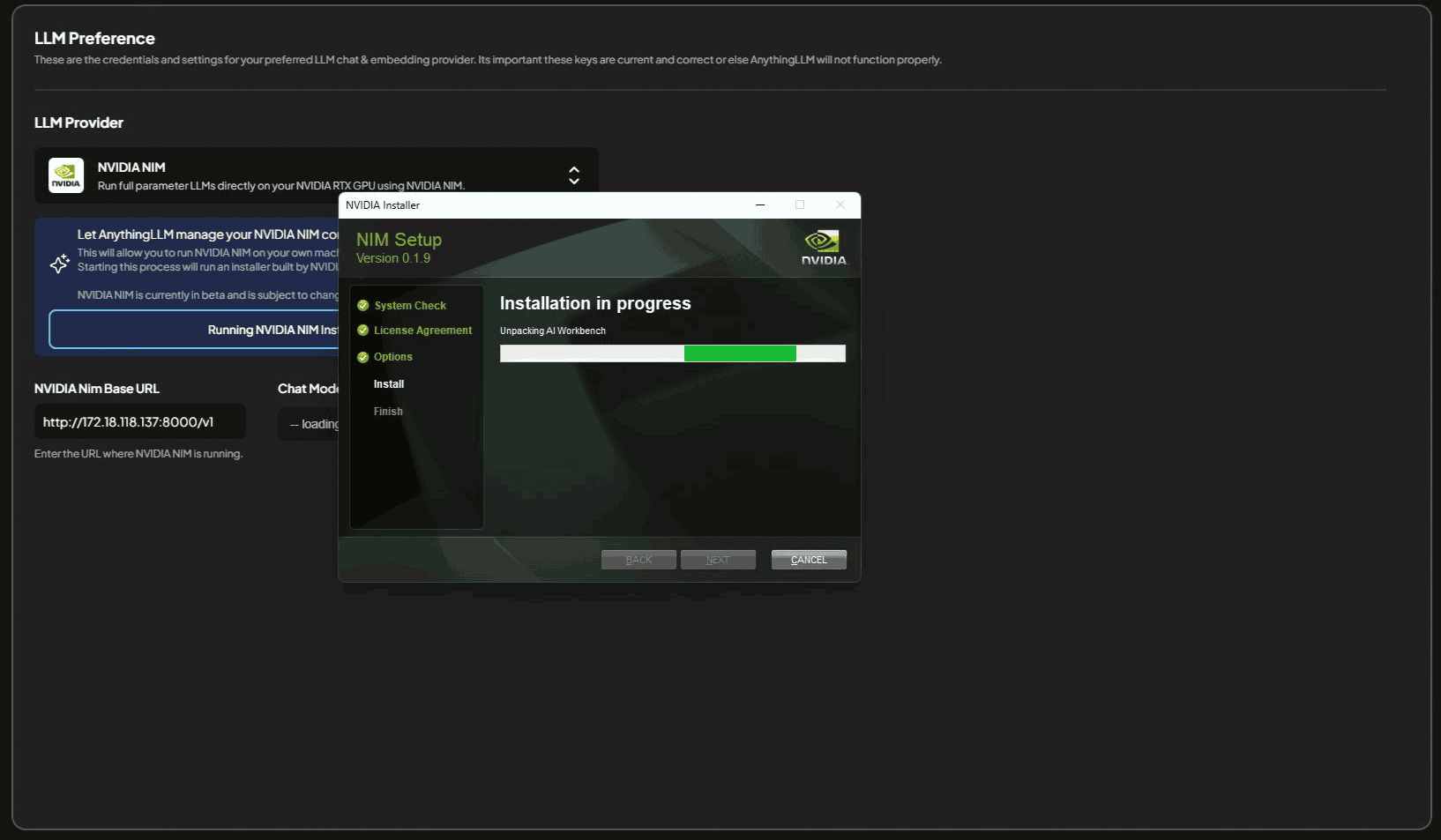 Click through the installer and follow the instructions to install NVIDIA NIM. This process will take a few minutes to complete and may require a restart of your machine post-installation.